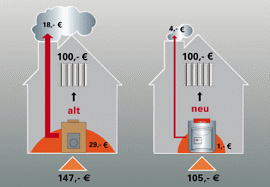 Alte Heizkessel arbeiten unwirtschaftlich und verursachen deshalb um bis zu 30-40% höhere Energiekosten als moderne Niedertemperatur- und Brennwertkessel.